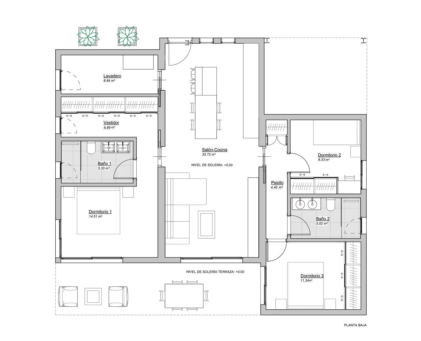 - 3 dormitorios
